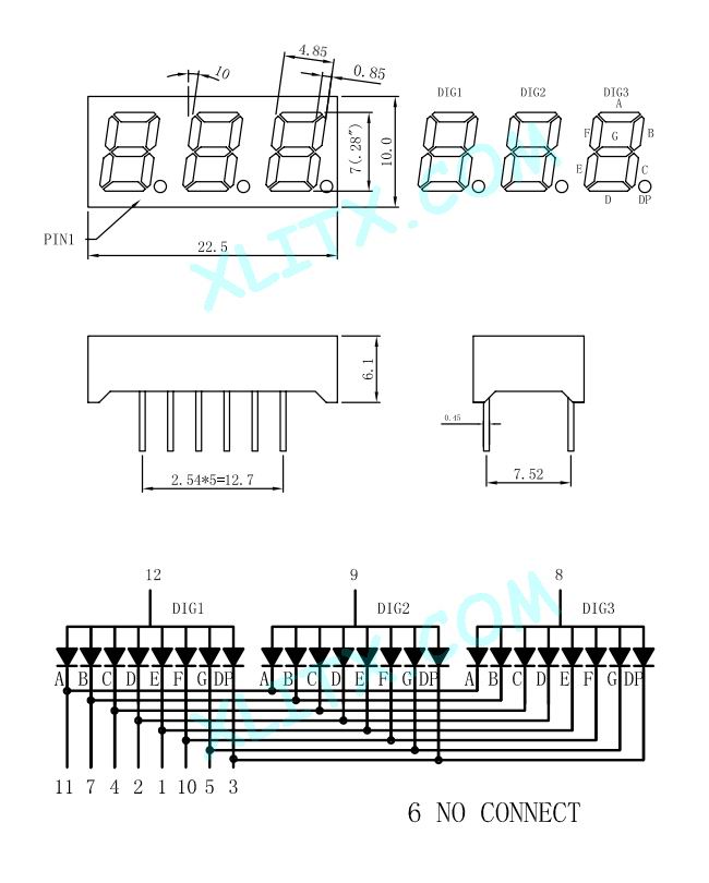 2831BS - 0.28-inch Red 3-Digit CA LED 7-Segment Display 2831BS