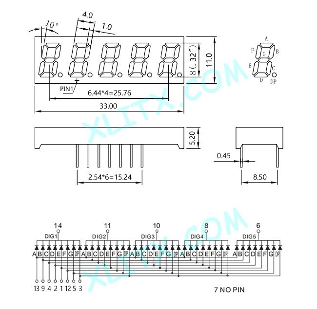 3251AGG - 0.32-inch Green 5-Digit CC LED 7-Segment Display 3251AGG
