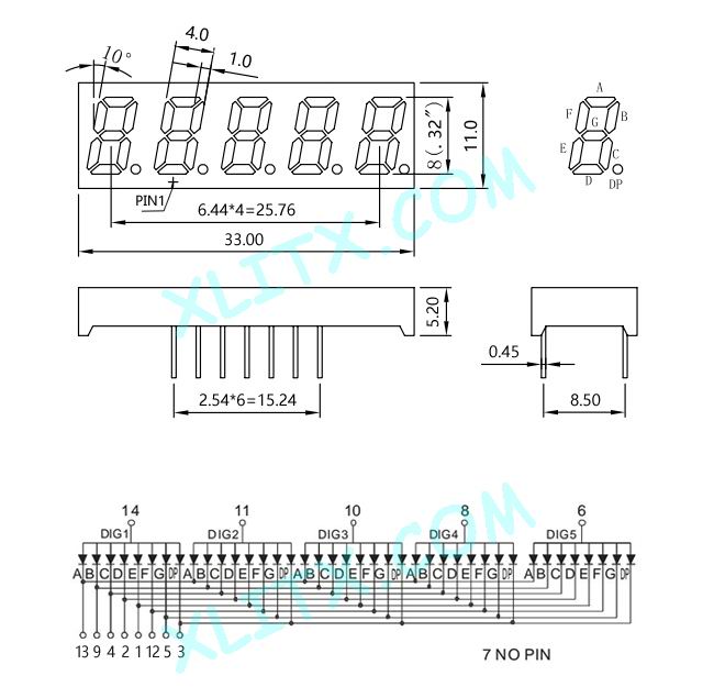 3251BGG - 0.32-inch Green 5-Digit CA LED 7-Segment Display 3251BGG