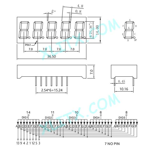3561BB - 0.36-inch Blue 5-Digit CA LED 7-Segment Display 3561BB
