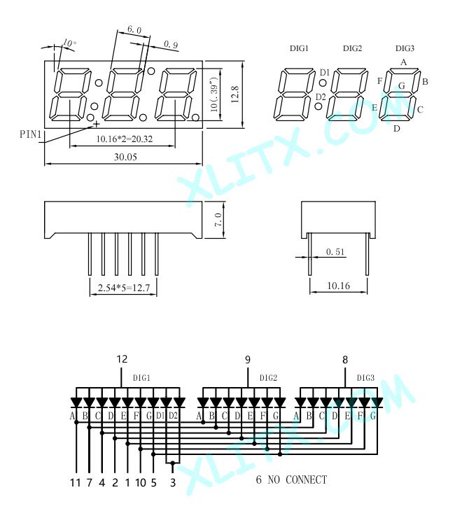 3932BS - 0.39-inch Red 3-Digit CA LED 7-Segment Display 3932BS