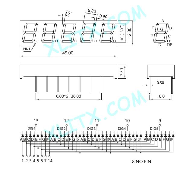3951AB - 0.39-inch Blue 5-Digit CC LED 7-Segment Display 3951AB