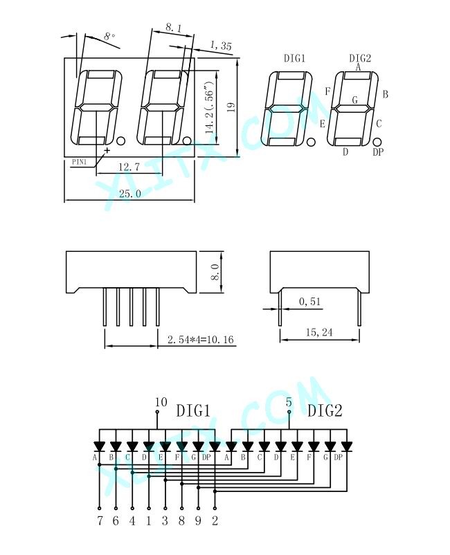 5621BS - 0.56-inch Red 2-Digit CA LED 7-Segment Display 5621BS