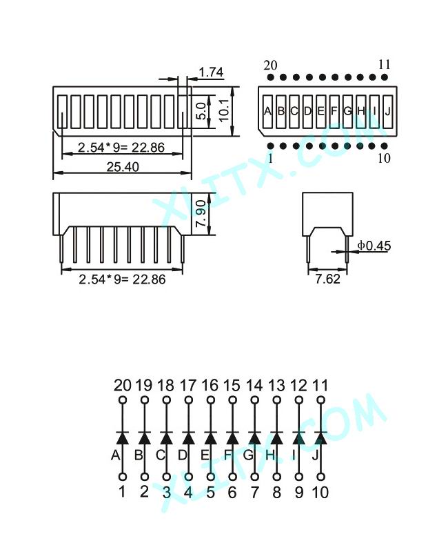 B10B - Blue 10-segment Light Bar LED Display B10B